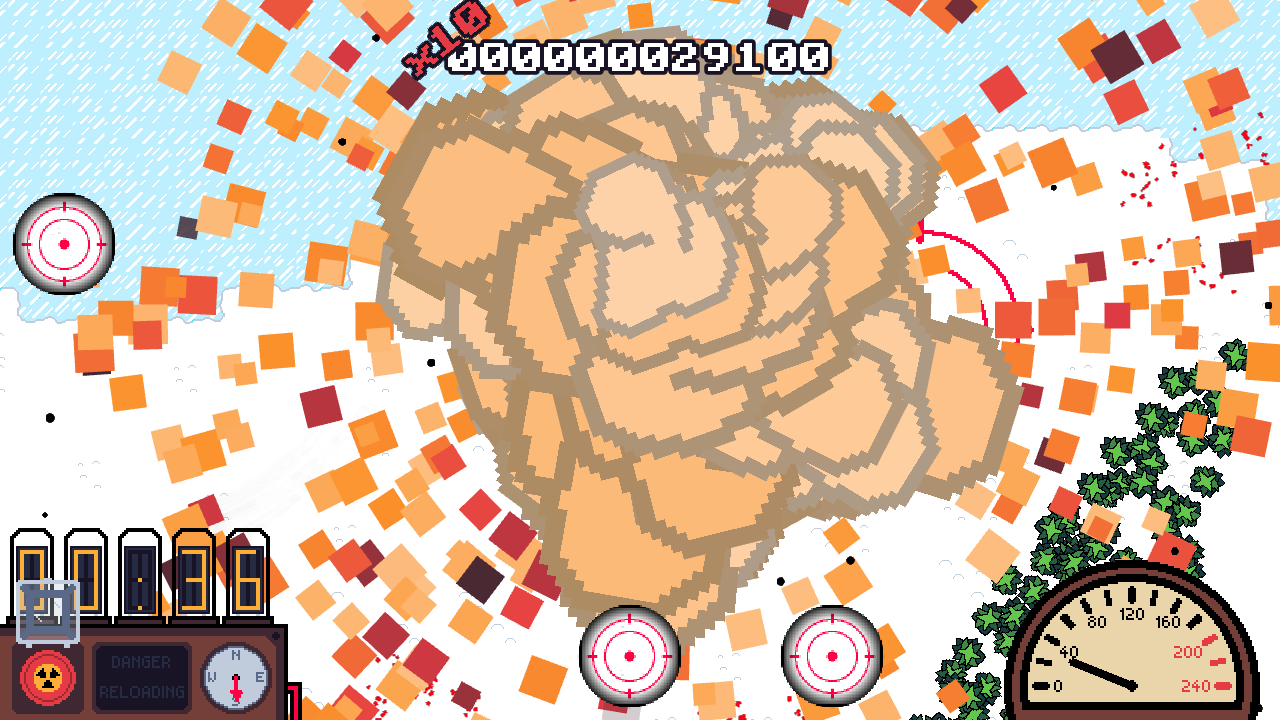 Drive through the slick, Winter wasteland and nuke the sources of EVIL. Watch out, the undead don't plan on making it easy for you...